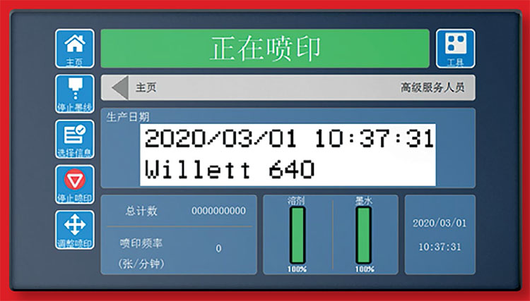 操作員界面提供預(yù)定義選項(xiàng)可供選擇,以減少噴碼錯誤并提供始終如一的高質(zhì)量噴碼。